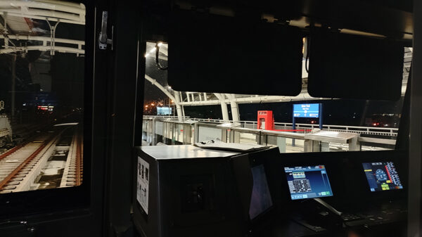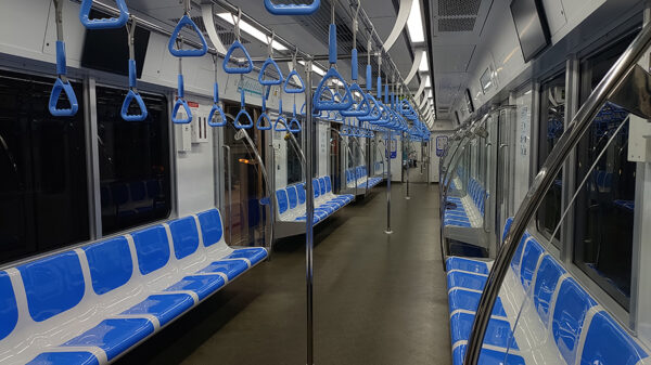 車両は日立製作所製の車両です。レール幅は標準軌なので日本より車両も幅が広く感じられます。まだ開業したてだからか3両編成ですが、夕方のラッシュ時でも乗車率は60%程度でゆったり感がありました。