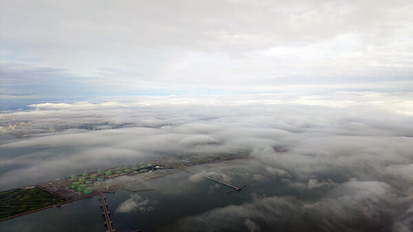 徐々に高度をおろしていきますが、どうやらソウルは雲が多い感じです。